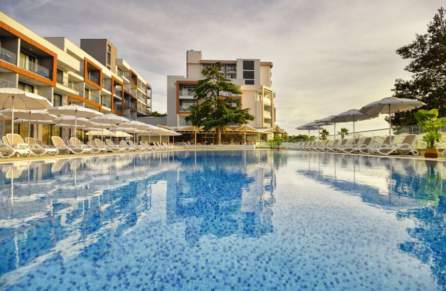 Nazwa hotelu: Sunset Resort Kategoria hotelu: 5 Kraj: Bułgaria Region: Riwiera Bułgarska Miasto: Pomorie Wylot: 11.09.2020 Wylot z: Lublin Długość pobytu: 7 dni Cena od: 1538 zł za osobę ! Link do oferty: Sunset Resort