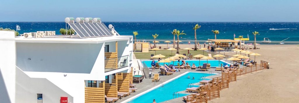 wybudowany na sezon 2019 dwupiętrowy budynek recepcja 24 h Wi-Fi w lobby i wyznaczonych strefach (bezpłatne) 1 restauracja 2 bary – przy basenie i w lobby 80 pokoi hotel nie posiada usprawnień dla osób o ograniczonej sprawności ruchowej