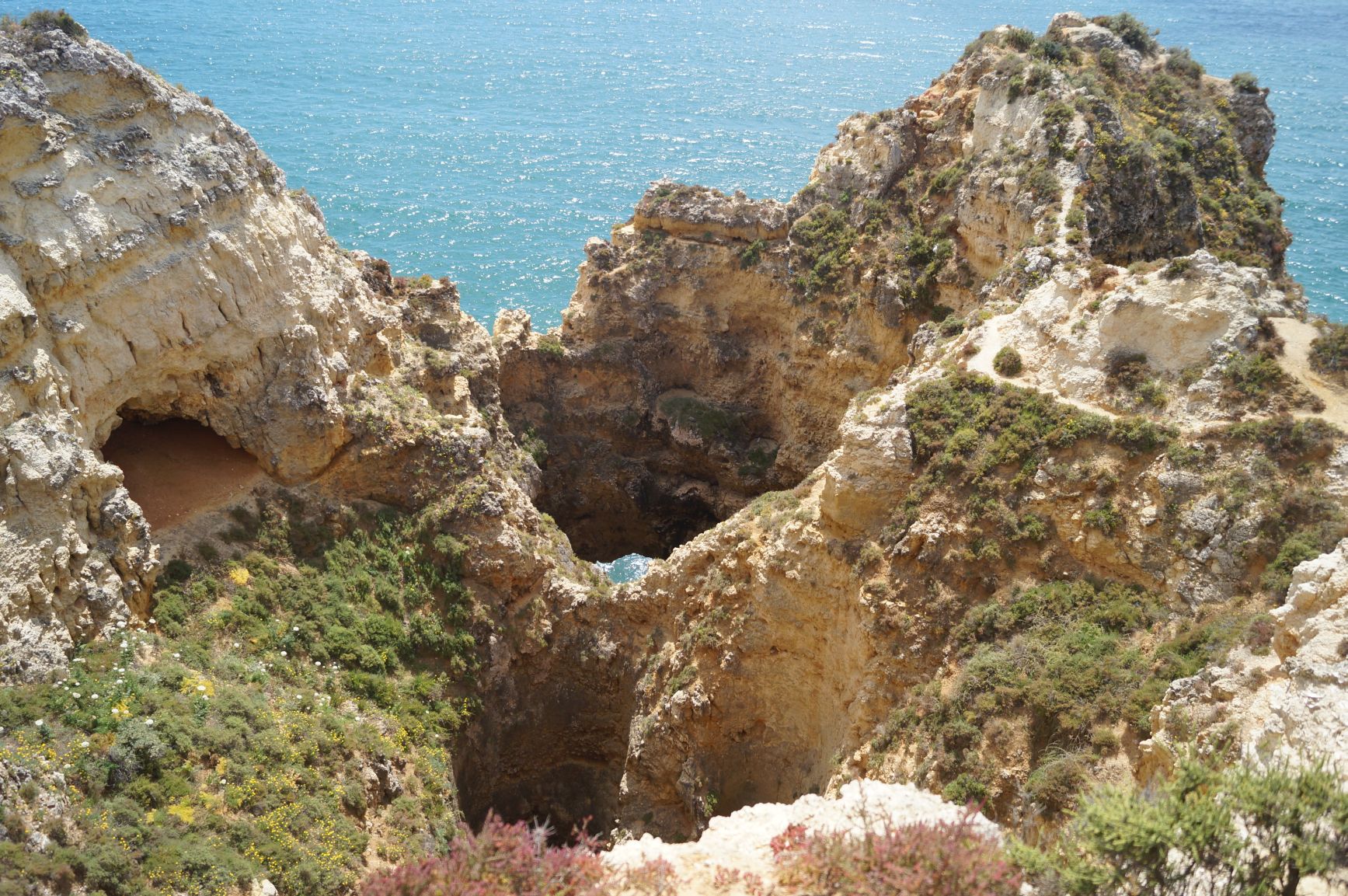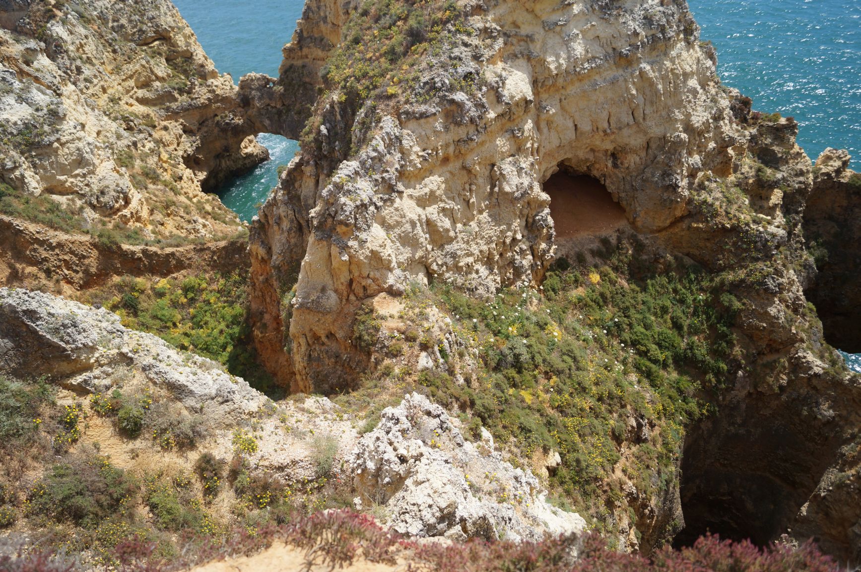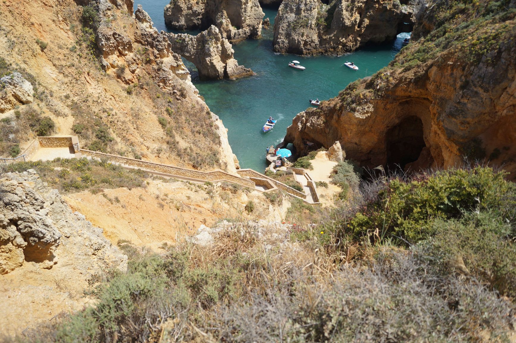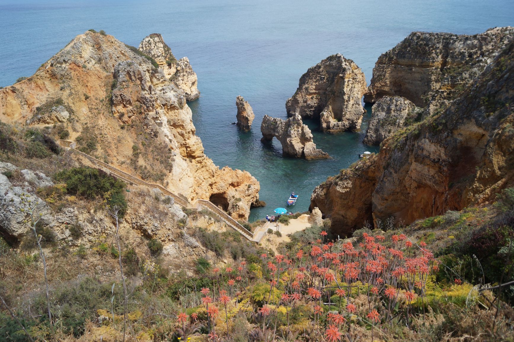Skały Ponta da Piedade świetnie ogląda się ze szczytu klifu ale niesamowite wrażenie robią gdy zejdzie się schodami